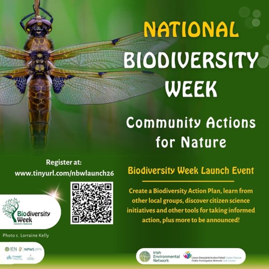 Weâre also excited to spotlight an upcoming event in partnership with the Irish Environmental Network, launching National Biodiversity Week this May. This hands-on event will support communities to take practical action for nature, with workshops, expert speakers, and real-life examples to inspire local biodiversity initiatives.